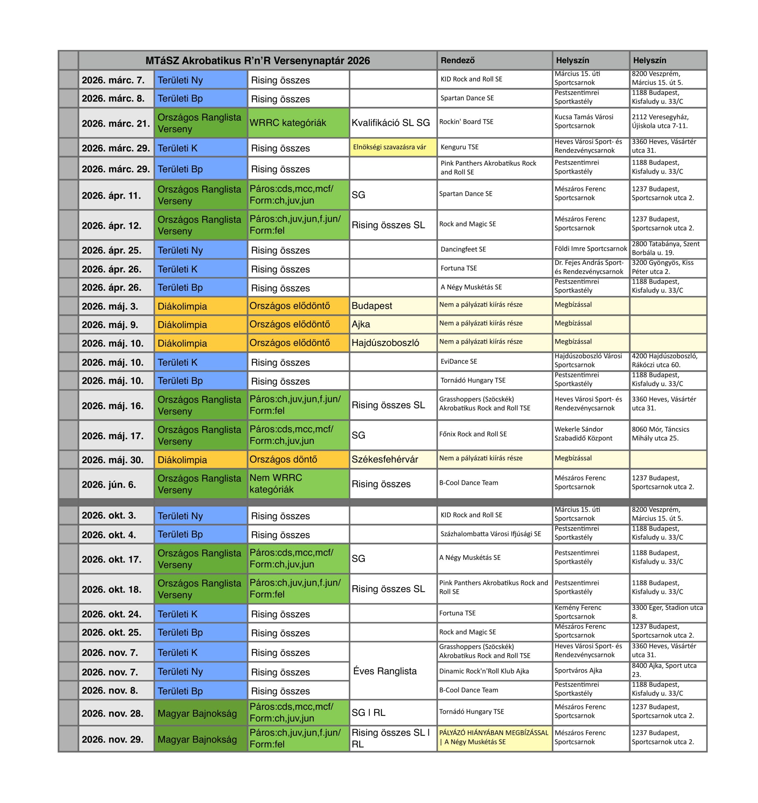 A nemzetközi versenyekről ide kattintva tájékozódhat: https://wrrc.dance/competitions/calendar/